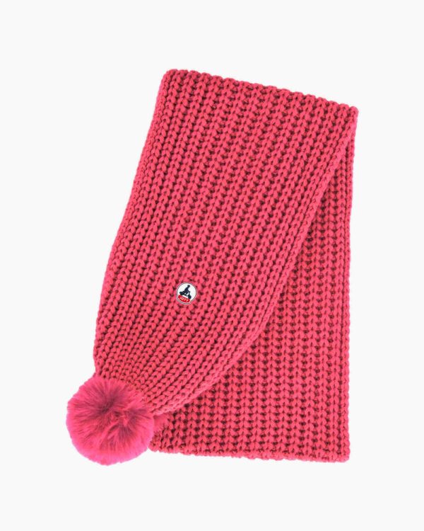L’écharpe VANCOUVER est tricotée en laine mélangée. On aime l’originalité des côtes perlées et des pompons.
